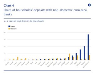Looking at the shares of inbound and outbound deposits by country reveals further differences. For example, Luxembourg, Estonia and Lithuania saw significantly more deposits from euro area households in other countries coming into their banks than deposits being made by households in their countries going abroad. In the case of Cyprus, Greece and Slovenia, however, the situation is exactly the opposite (Chart 4).