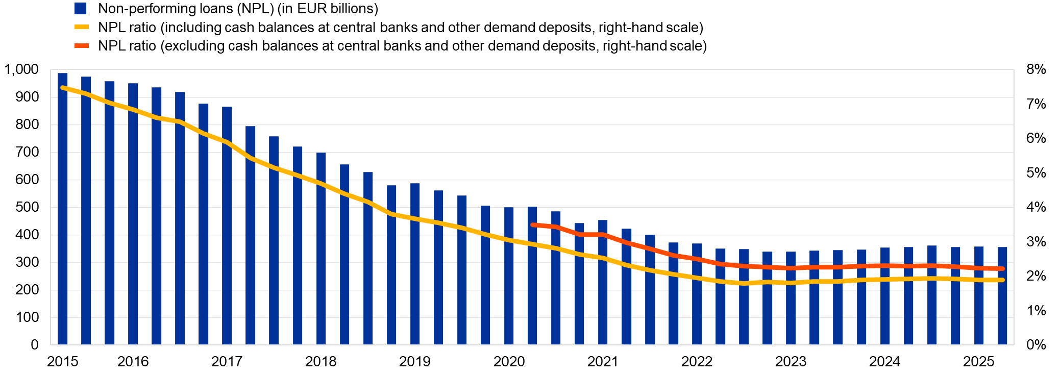 - Data on European banks refer to significant institutions under the direct supervision of the ECB. Please see the latest list of supervised entities as well as the latest available supervisory data that refer to the second quarter of 2025.