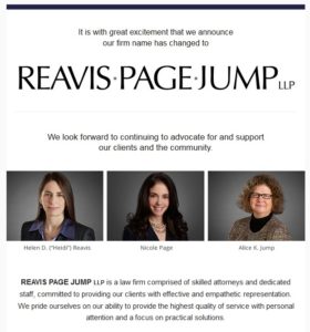 04 Dec Member News Reavis Parent Lehrer LLP changes its name to Reavis Page Jump LLP Posted by EACCNY December 4, 2017 By Reavis Page Jump LLP Compliments of Reavis Page Jump LLP, a member of the EACCNY Facebook Twitter Google Email Pinterest