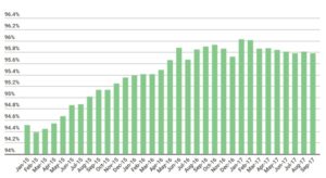 Positive industrial loan performance can also be attributed to favorable supply and demand conditions, as demand growth has considerably outpaced supply growth over the past few years. Industrial occupancy rates are also on an upward trend, and are expected to continue rising through the end of 2017, albeit at a decelerated pace due to new supply. Ecommerce, logistics, and distribution needs are the leading motives for leasing activity in new completions. This has driven the vacancy rate to a historic low of 5.2%. Within CMBS, industrial loans posted an even lower average vacancy rate of 4.2% in September.