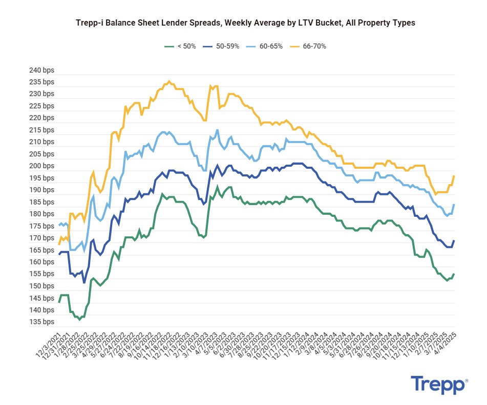 Our take is that the current degree of policy uncertainty will likely lead to higher cost of capital, elevated lender spreads, and lower transaction volume across CRE, at least in the short-term. In the meantime, Trepp Research will continue to monitor the metrics discussed above, including securitized issuance and loan spreads, for signs of increased or decreased activity, and loosening or tightening underwriting.